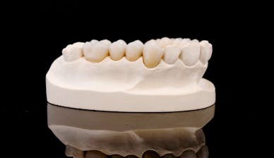 Das eigentliche Zahnimplantat ist eine künstliche Zahnwurzel aus Reintitan. Wenn diese künstliche Zahnwurzel im Kieferknochen festgewachsen ist, wird eine künstliche Zahnkrone aufgesetzt. Damit ist der Lückenschluss komplett.